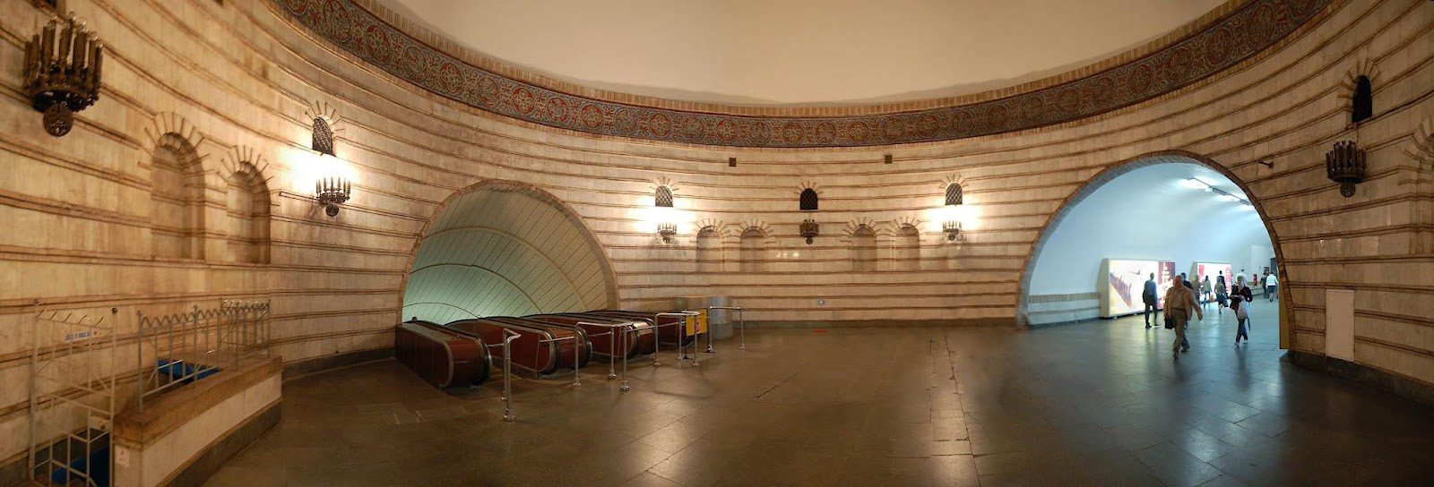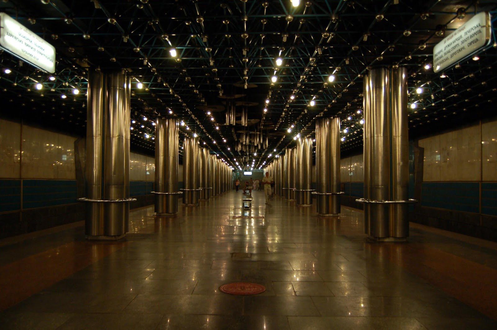 - Массивные металлические люстры на станции напоминают храмовое освещение.