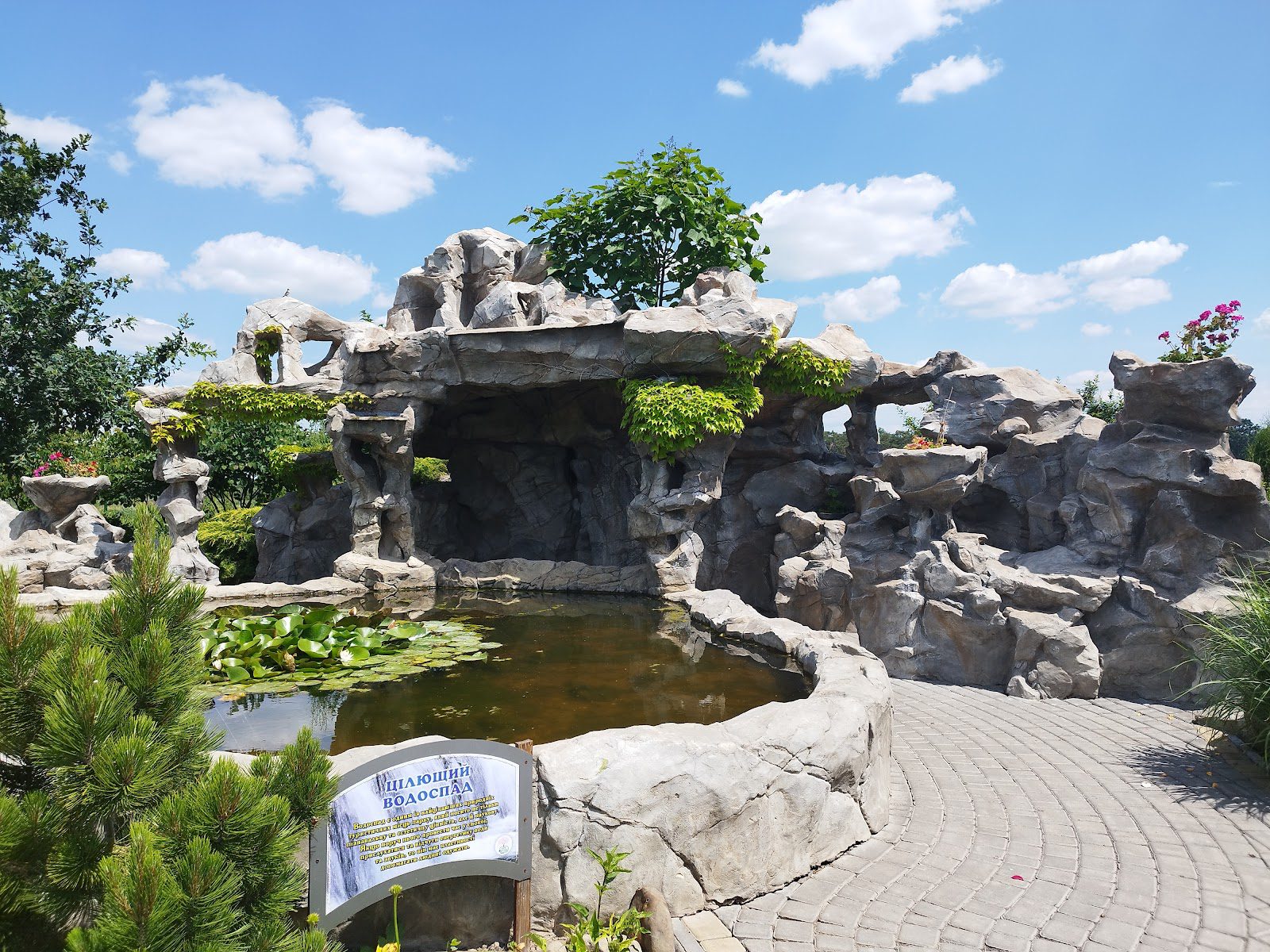 На территории парка есть место, где можно спрятаться от палящего солнца, его называют грот, то есть искусственная пещера создана из камней. В ней стоит фонтан с рыбками и скамьи, на которых можно перевести дух после прогулки. Здесь также находится японский сад камней и корабль “Санта-Мария”, на котором Колумб открыл Америку. На “Острове Сакур” можно найти и мифических существ, таких как морское чудовище Левиафан в форме затонувшего корабля, съевшего камня и многих других не менее интересных локаций. Также стоит заметить, что всю эту красоту омывает величественная река Рось.