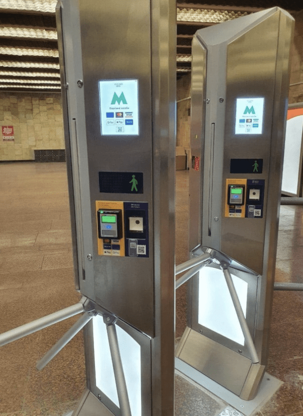 Система безконтактної оплати у метро трішки різниться від наземного транспорту. З 24 лютого 2019 року на станції “Площа Льва Толстого” (сучасна “Площа Українських Героїв”) закінчилося встановлення турнікетів, завдяки яким кияни можуть сплатити за проїзд за допомогою банківських карток. З цього почалася ера змін київського метрополітену. Поступово турнікети, на яких можна сплатити не тільки QR-кодом чи Е-квитком, а й банківською картою, заполонили станції.